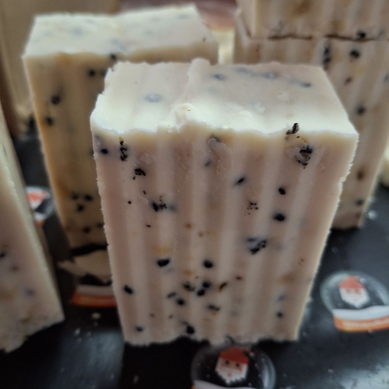 Savon exfoliant à la graine de phytolaque: fabriqué à partir de notre meilleure formule au lait de chèvre.